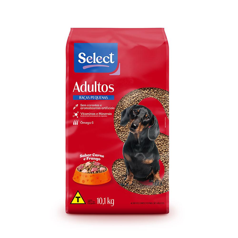 Alimento para Cães Select Carne e Vegetais 10,1kg. Alimento canino nutritivo e saboroso, em embalagem prática e econômica. Aproveite os preços do Tenda Atacado!