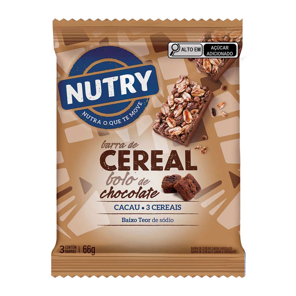 Barra de Cereal Bolo de Chocolate Nutry 22g 3 Unidades