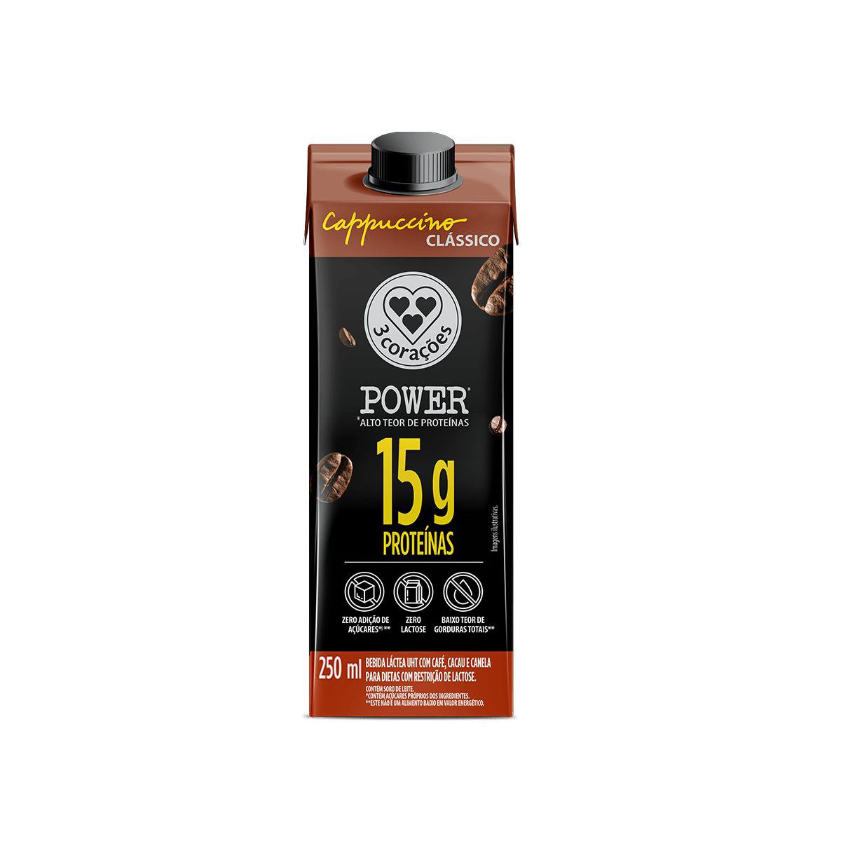 Bebida Láctea Proteica 15g Cappuccino Classico 3 Corações Power 250ml