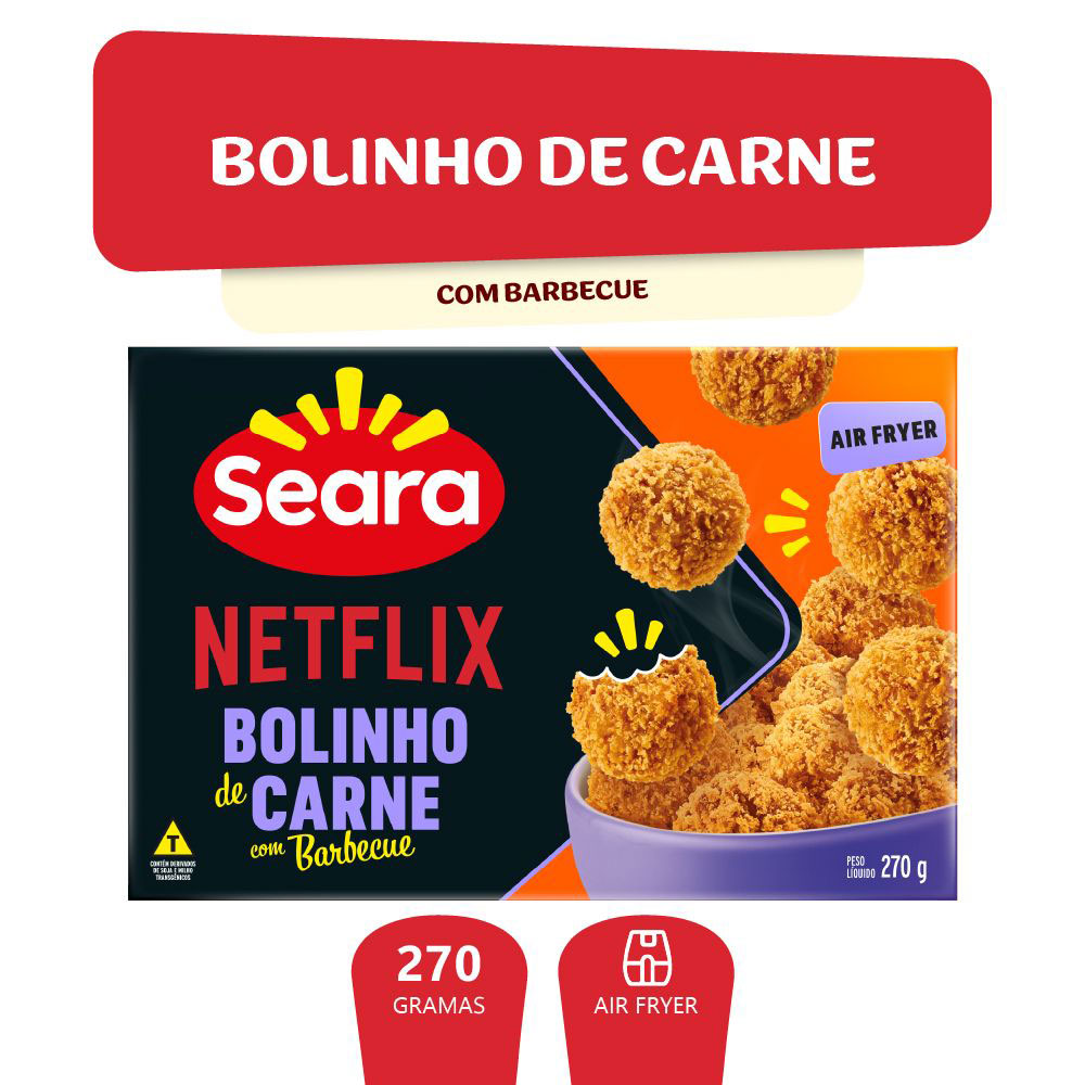 O Bolinho de carne suína com barbecue Seara Netflix 270g é feito com carne desfiada, um toque de barbecue e empanamento super crocante! Com a Seara você tem sabor e praticidade para curtir suas séries preferidas!