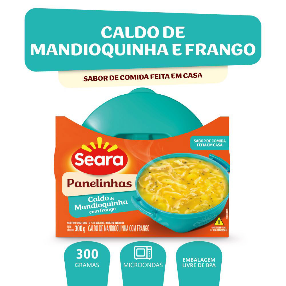 Nosso caldo de mandioquinha com frango na panelinha, uma opção saborosa e prática. Experimente a linha de panelinhas da Seara, um sabor caseiro para cada dia da semana.