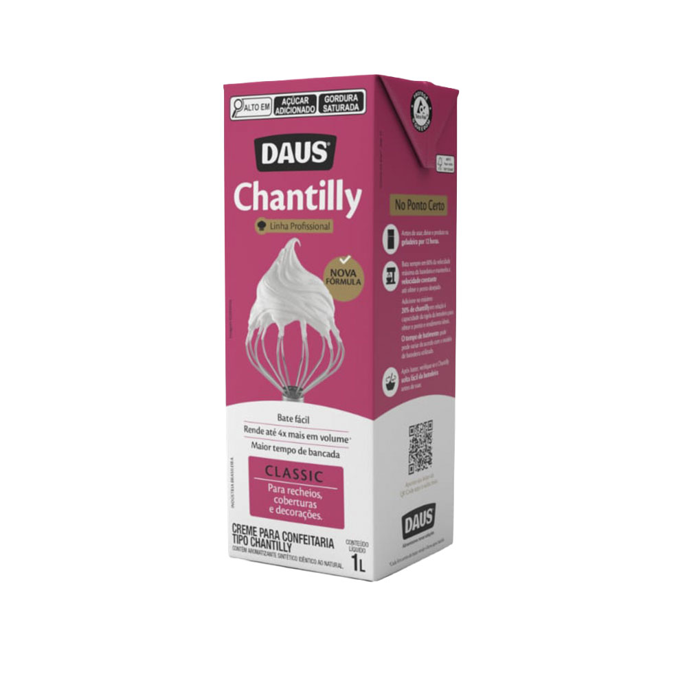 O Chantilly Daus de 1 litro é a escolha perfeita para quem busca um creme de alta qualidade para suas sobremesas e decorações. Com uma textura cremosa e suave, esse chantilly proporciona um sabor irresistível, ideal para complementar bolos, tortas, sorvetes e outras delícias. Feito com ingredientes selecionados, ele tem uma ótima estabilidade, garantindo que suas criações mantenham a forma e o sabor por mais tempo. Prático e versátil, o Chantilly Daus é fácil de usar, permitindo que você decore suas receitas com elegância e sabor. Não importa a ocasião, esse chantilly é a adição ideal para deixar suas sobremesas ainda mais especiais.