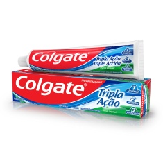 A pasta de dente Colgate Tripla Ação Menta Original proporciona tripla proteção para você e sua família: dentes brancos, protegidos e um hálito refrescante.