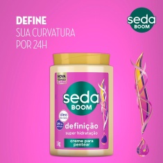 A vida é cheia de possibilidades - tenha um cabelo incrível para todas elas. Está pronta para conhecer a Nova Geração Seda Boom? O Creme para Pentear Seda Boom Definição Super Hidratação possui nova tampa e rótulo alinhados à família Boom, mas o mesmo resultado na finalização. Este creme para cabelos cacheados une a tecnologia Fitagem Complex com o poder do Óleo de Coco para deixar seus cachos definidos e hidratados. A nova fórmula contém Óleo de Coco, com nutri keratin, para definir a sua curvatura por 24h e entregar super hidratação para seus cabelos*, como ele merece! Esse creme para pentear é liberado, possui filtro UV em sua composição e garante 72h da mesma fragrância já amada pelas nossas consumidoras. Na nova Linha Seda Boom, você escolhe seu creme para pentear de acordo com a finalização que deseja, afinal, seja seus cabelos crespos, cacheados ou ondulados, você é livre para se expressar como quiser. Para cabelos cacheados definidos, siga a dica de finalização: Fitagem. Pronta? Com o cabelo úmido, separe-o em partes. Você pode usar um borrifador; passe o creme de pentear Seda Boom Definição mecha por mecha, usando os dedos como estivesse penteando os cabelos, de cima para baixo (evite muito creme na raiz!); amasse as mechas de baixo para cima, ajudando na formação dos cachos. Para resultados mais incríveis, use toda a linha Seda Boom: Shampoo, Condicionador e Máscara de Tratamento. Seda possui a certificação Cruelty-Free da PETA, o que significa que não testa seus produtos em animais. #JuntasArrasamos cacheando como quisermos, com fios mais lindos e hidratados. *Com o uso do Creme para Pentear Seda Boom Definição, comparado com shampoo sem agentes condicionantes.