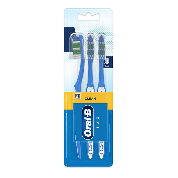 Escova Dental Oral B 123 Leve 3 Pague 2: Oral B é uma empresa de alta qualidade e pensa na sua saúde bucal, e desenvolveu escova dental oral B 123 limpa, previni a formação de placas a cáries nos dentes te proporciona uma limpeza sem agredir a gengiva, seu modelo possui uma cabeça compacta que facilita a limpeza dos dentes posteriores, garantindo dentes protegidos e uma boca saudável, compre já sua e mantenha a escovação em dia dos seus dentes.