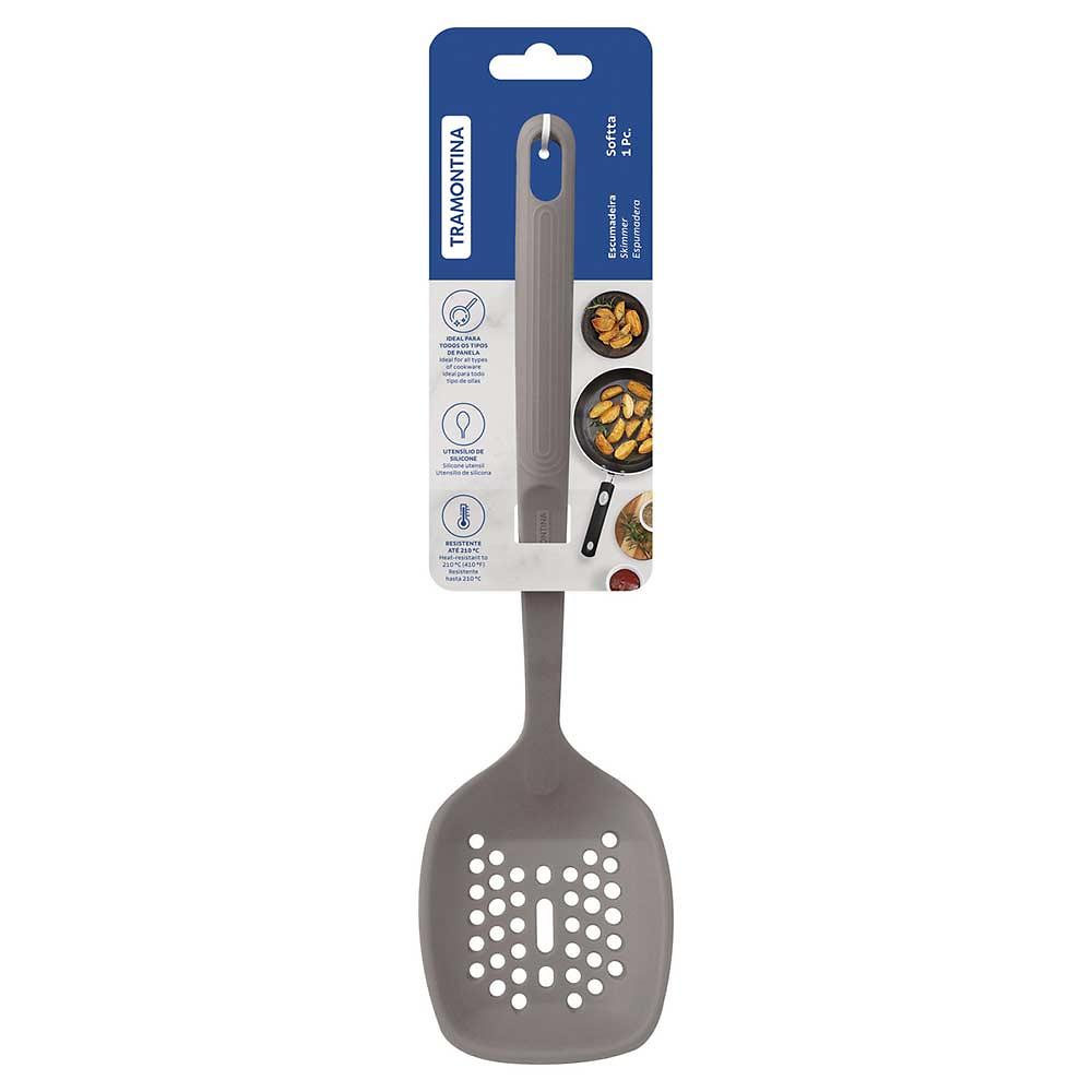 Facilite o dia a dia na sua cozinha com a escumadeira Tramontina Softta em silicone cinza. Ideal para todos os tipos de panelas, esta espumadeira é resistente a temperaturas de até 210º C, garantindo segurança e durabilidade. Além de prática, é fácil de limpar, podendo ser colocada diretamente na lava-louça. A espumadeira Tramontina Softta combina funcionalidade, conforto e estilo, sendo a escolha certa para quem busca otimizar o preparo das refeições com elegância.