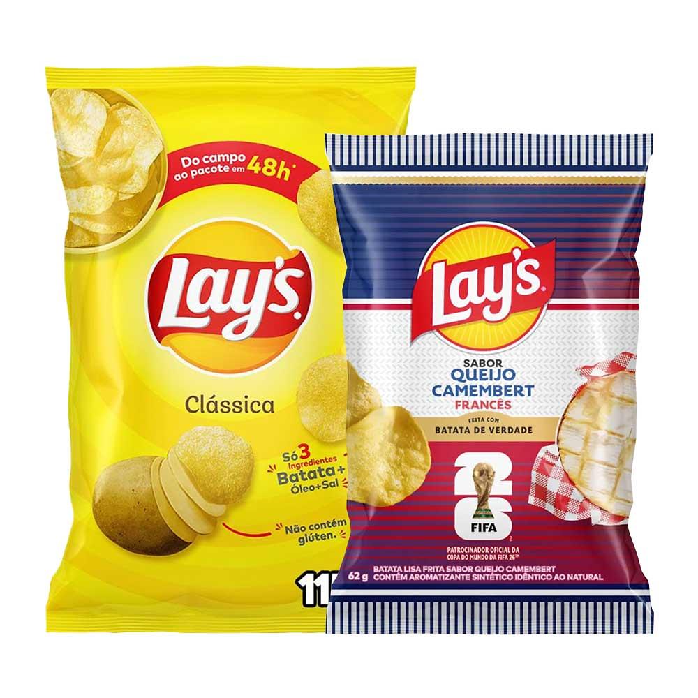Kit Lays Clássica 115g e Lays Queijo 62g - Snack Crocante e Saboroso