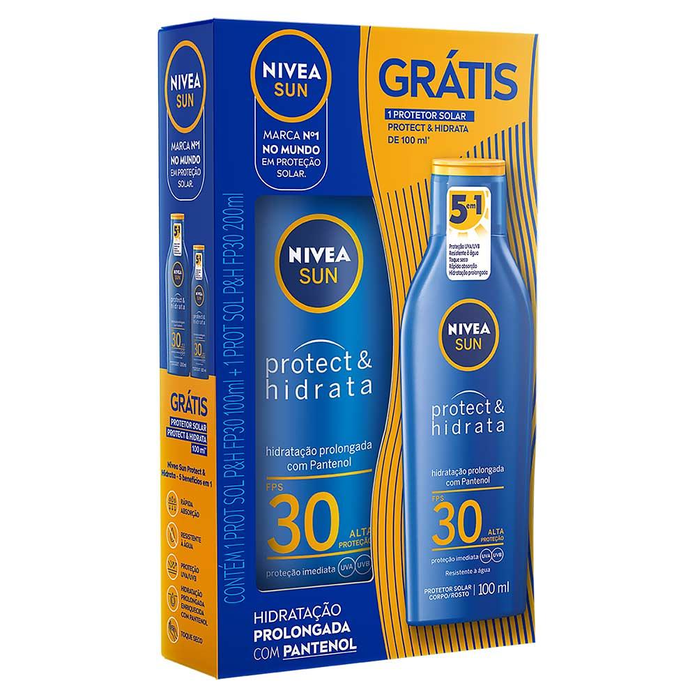 Kit Protetor Solar Toque Seco FPS 30 Protect & Hidrata Nivea Sun 200ml Grátis Protetor Solar FPS 30 100ml