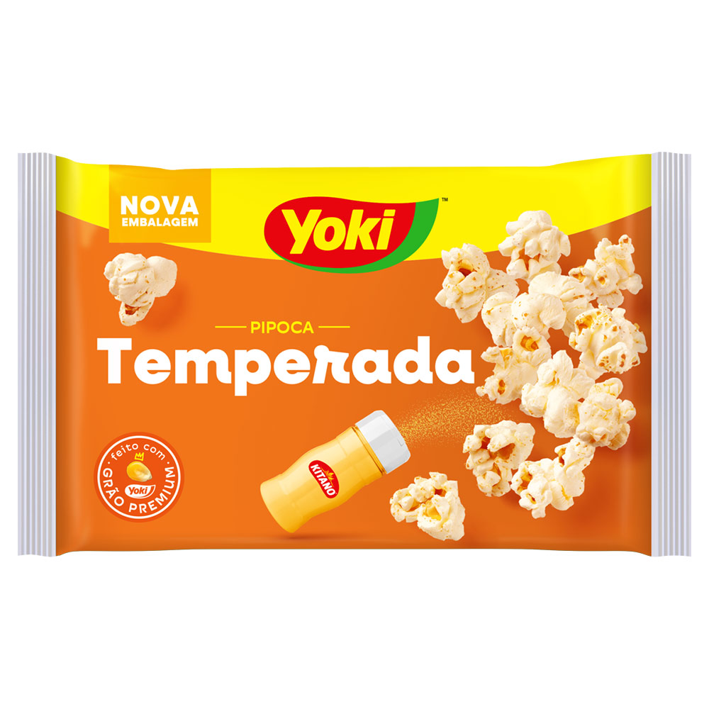 A Pipoca para Micro-Ondas Temperada com Toque de Chef Yoki eleva esse acompanhamento a um nível especial, graças ao tempero único do Toque de Chef Kitano. Livre de transgênicos, quentinha e cheirosa, essa pipoca para micro-ondas vai tornar a sessão de cinema em casa muito mais divertida e saborosa. Sem contar que é prática e não faz sujeira na cozinha. Reúna os familiares e amigos e saboreie essa pipoca para micro-ondas especial que fica pronta em poucos minutos e ajuda a construir bons momentos. Além da pipoca para micro-ondas com toque de Chef, conheça os demais produtos da linha Yoki.
