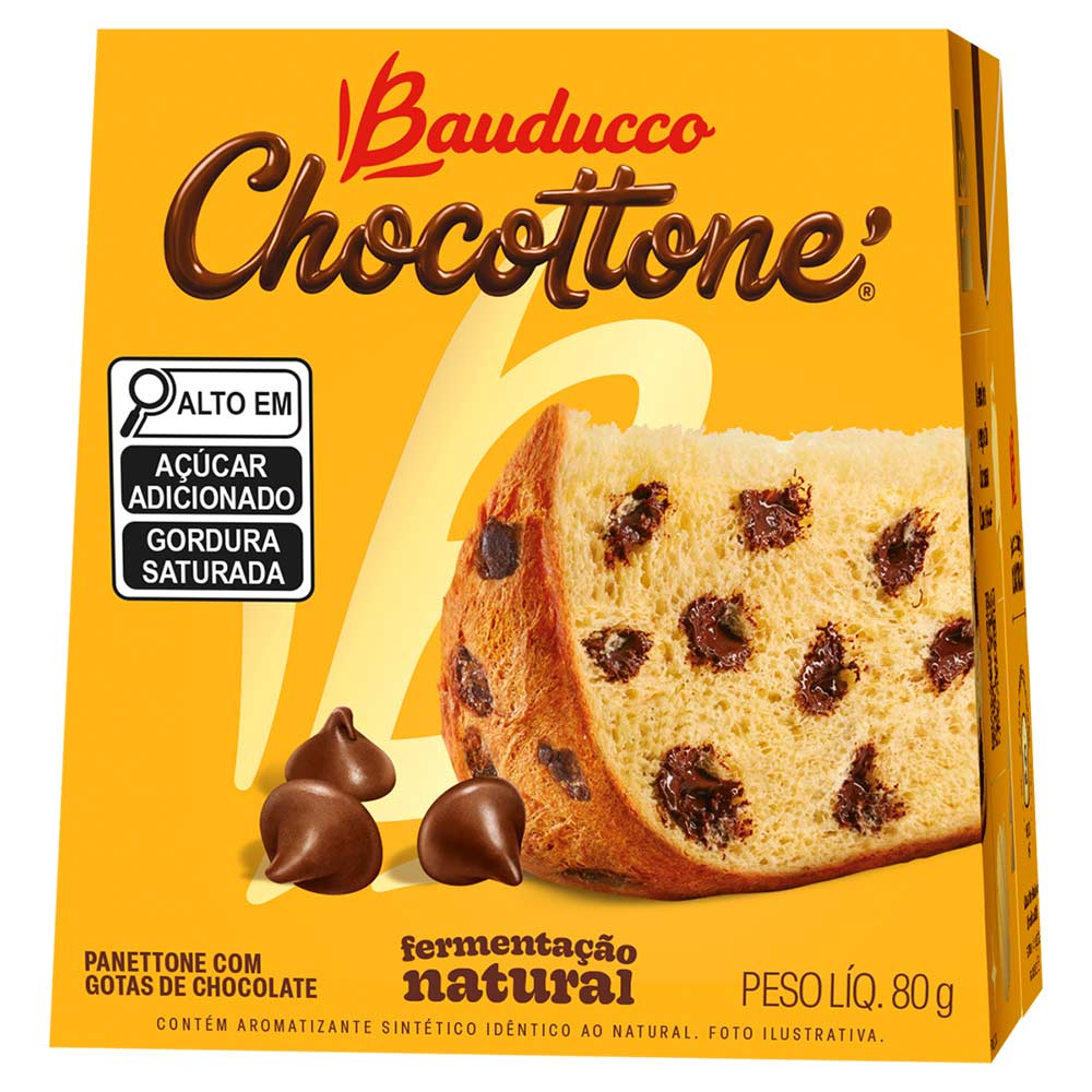Na versão mini, o chocottone Bauducco 80g é uma ótima opção para presentear as crianças na noite de Natal ou para dar um gostinho de fim de ano desde já. Mesmo em menor tamanho, a massa tradicional Bauducco permanece a mesma: saborosa, fresca e molhadinha. As gotas de chocolate dão o toque final ao mini chocottone Bauducco.