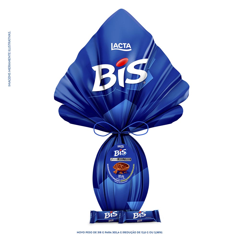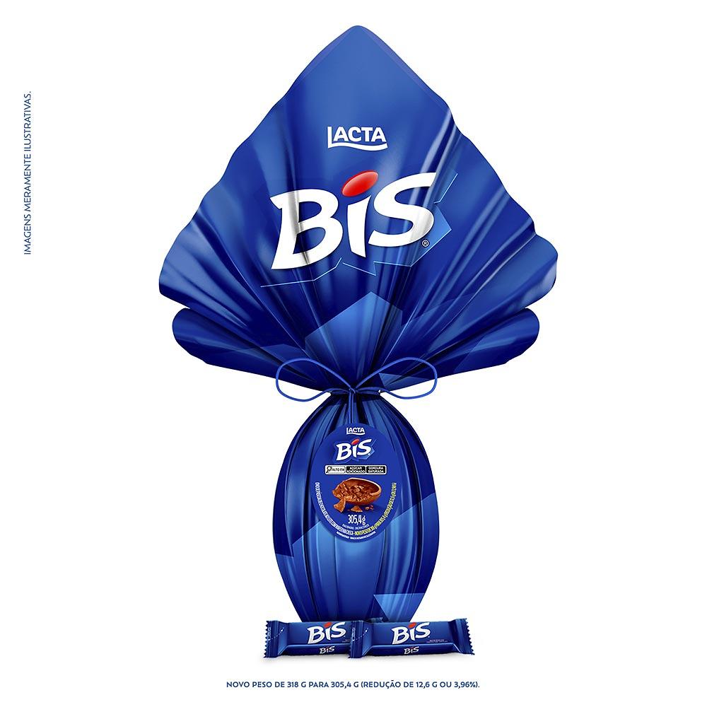 Chocolate ao Leite com Bis. O Ovo de Páscoa Lacta Bis traz a perfeita combinação do delicioso chocolate ao leite Lacta e wafer crocante de Bis. Opção perfeita para presentear na páscoa.