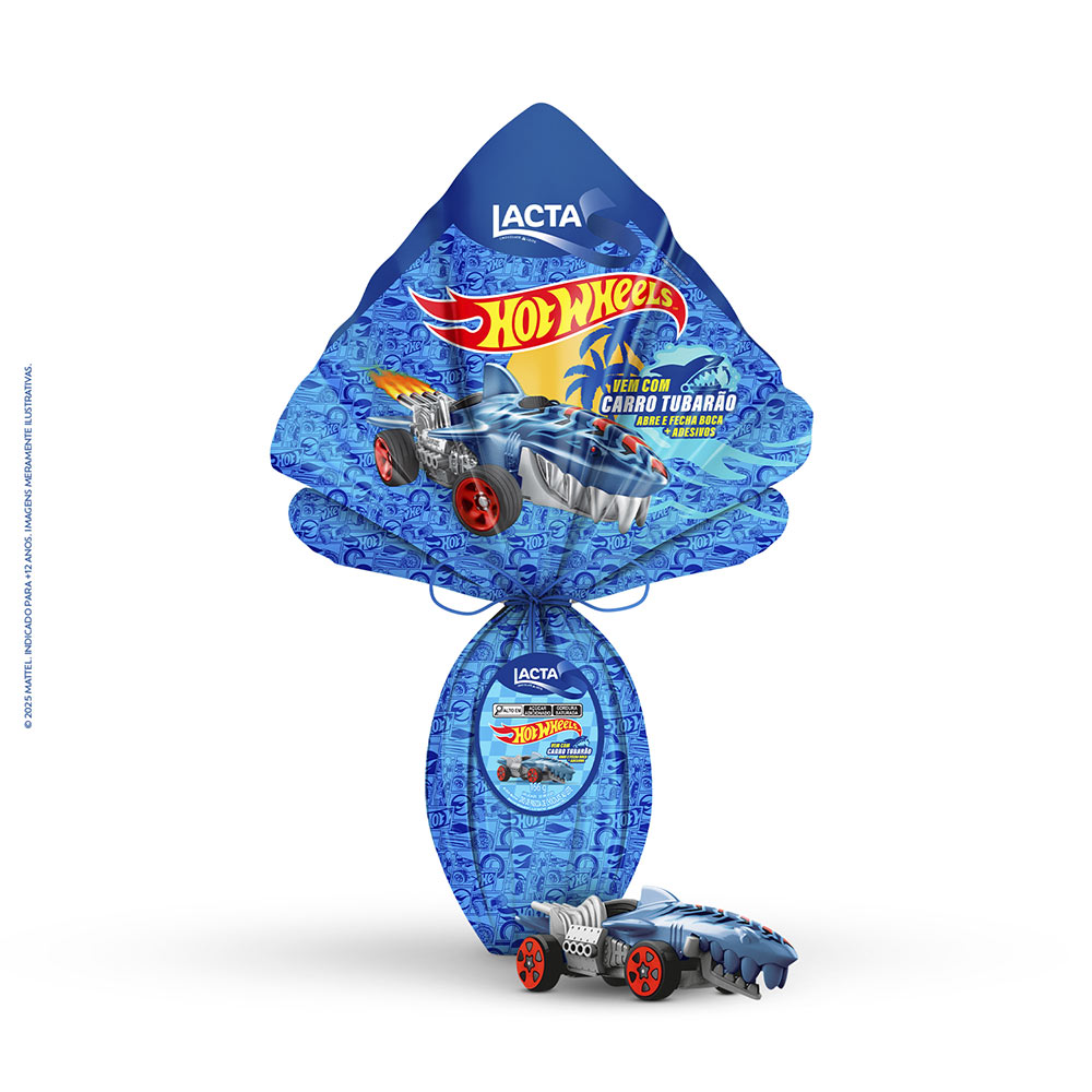 O Ovo Lacta Hot Wheels traz o chocolate deliciosamente cremoso de Lacta e o carrinho mais vendido do Brasil. Nele vem com 1 carrinho e cartela para decorar.