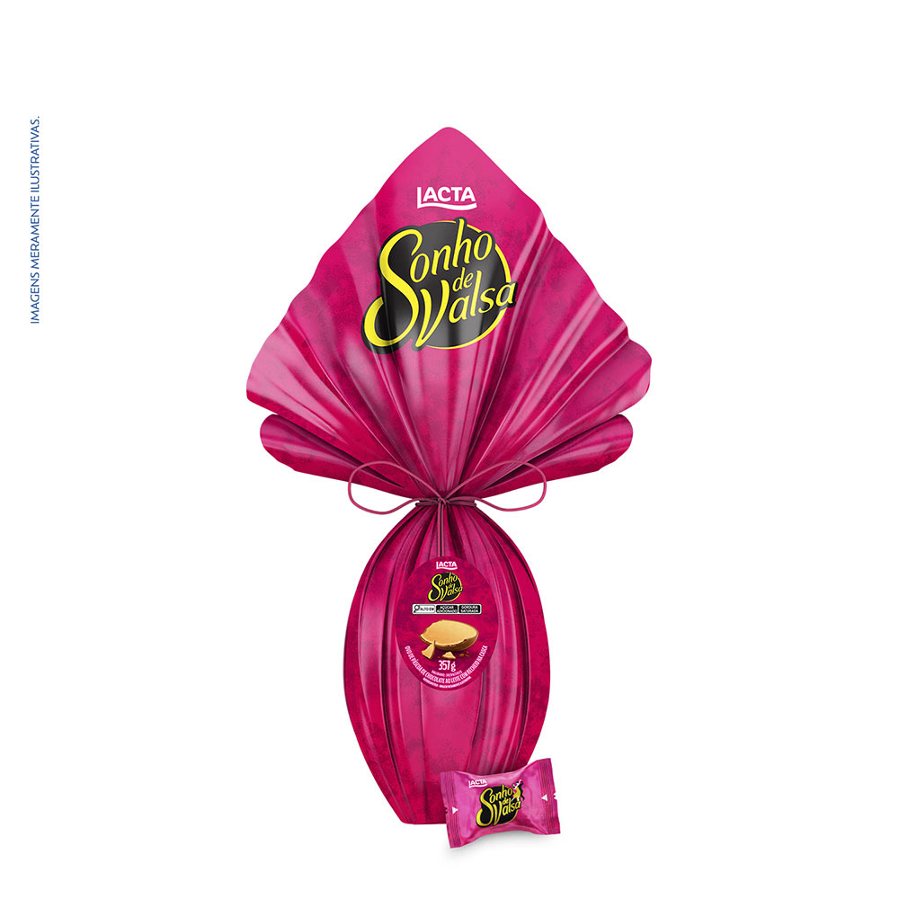 O irresistível Sonho de Valsa agora na versão Ovo de Páscoa, une chocolate Lacta com um recheio de amendoim e castanha de caju. Opção perfeita pra complementar sua Páscoa ou pra Presentar.