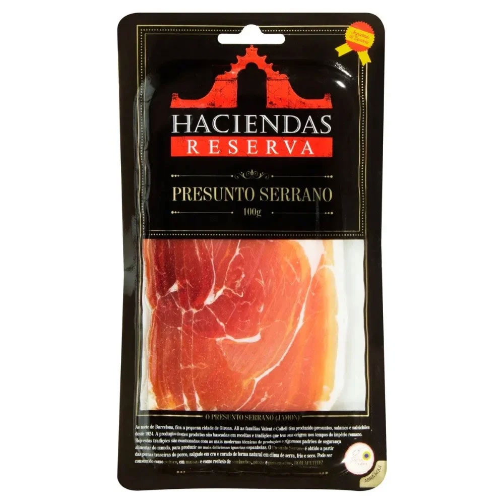 O Presunto Serrano Haciendas, fatiado e apresentado em uma embalagem de 100g, é um produto de alta qualidade ideal para quem busca sabor e praticidade. Produzido a partir de carnes selecionadas, esse presunto é curado no estilo tradicional, o que garante um sabor intenso e característico. As fatias finas tornam-no perfeito para ser utilizado em sanduíches, saladas ou como um aperitivo. Além disso, o Presunto Serrano Haciendas é livre de aditivos artificiais, oferecendo uma opção mais natural e saudável. Sua textura macia e sabor marcante vão enriquecer suas receitas, tornando cada refeição ainda mais saborosa. Aproveite a versatilidade do Presunto Serrano Haciendas e dê um toque especial aos seus pratos.