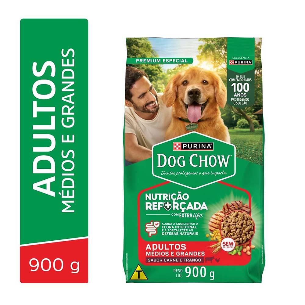 Ração para Cães Adultos Médios e Grandes Dog Chow Carne, Frango e Arroz 900g