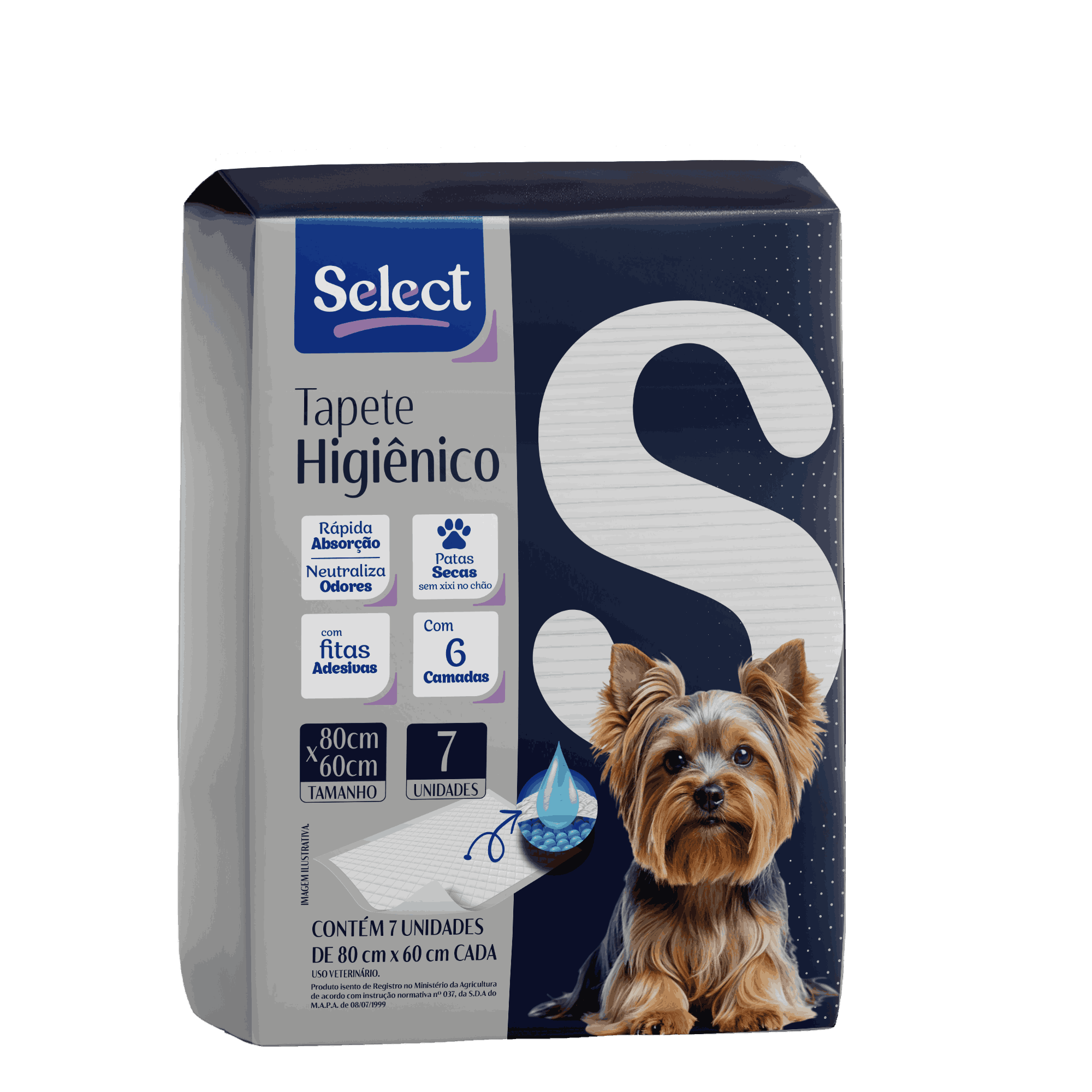 Tapete Higiênico para Cães Select 80x60 cm - Pacote com 7 Unidades